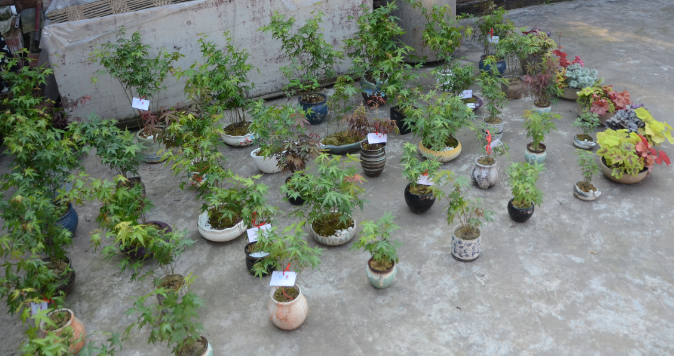 ▲余輝主任一行觀摩槭樹科盆栽