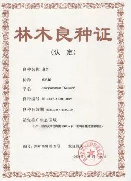 日前,四川省林業(yè)和草原局發(fā)布了一條關(guān)于《四川省發(fā)布2019年度林木良種公告》,作為農(nóng)林企業(yè)的七彩林科憑借自主選育的雞爪槭品種“青龍”、“金貴”順利通過四川省林木品種審定委員會(huì)審定,被認(rèn)定為林木良種,可在適宜種植范圍內(nèi)推廣。其中,“青龍”曾在2018年第六屆中國沐陽花木節(jié)獲產(chǎn)品金獎(jiǎng),“金貴”先后在第十四屆中國苗木交易會(huì)、2018年“美麗中國 最美金葉”評(píng)選大賽中獲產(chǎn)品金獎(jiǎng)。