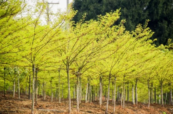 [品種特點(diǎn)]同樣為七彩林科引種馴化的雞爪槭變異品種“金貴”,春天,其新葉為亮黃色,葉片邊緣為橙紅色,炫彩奪目。夏天,成熟的葉子會(huì)變成亮綠色。秋天,葉片最后會(huì)變成由橙色和黃色合成的柔色。株型優(yōu)雅美觀。