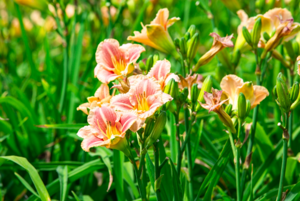 萱草屬多年生宿根草本,其葉形為扁平狀的長(zhǎng)線型,于開花期會(huì)長(zhǎng)出細(xì)長(zhǎng)綠色的開花枝,花色橙黃、花柄很長(zhǎng)、呈為像百合花一樣的筒狀。